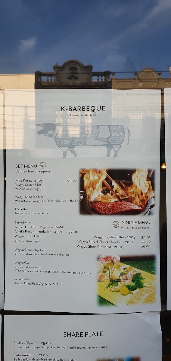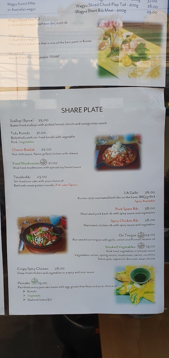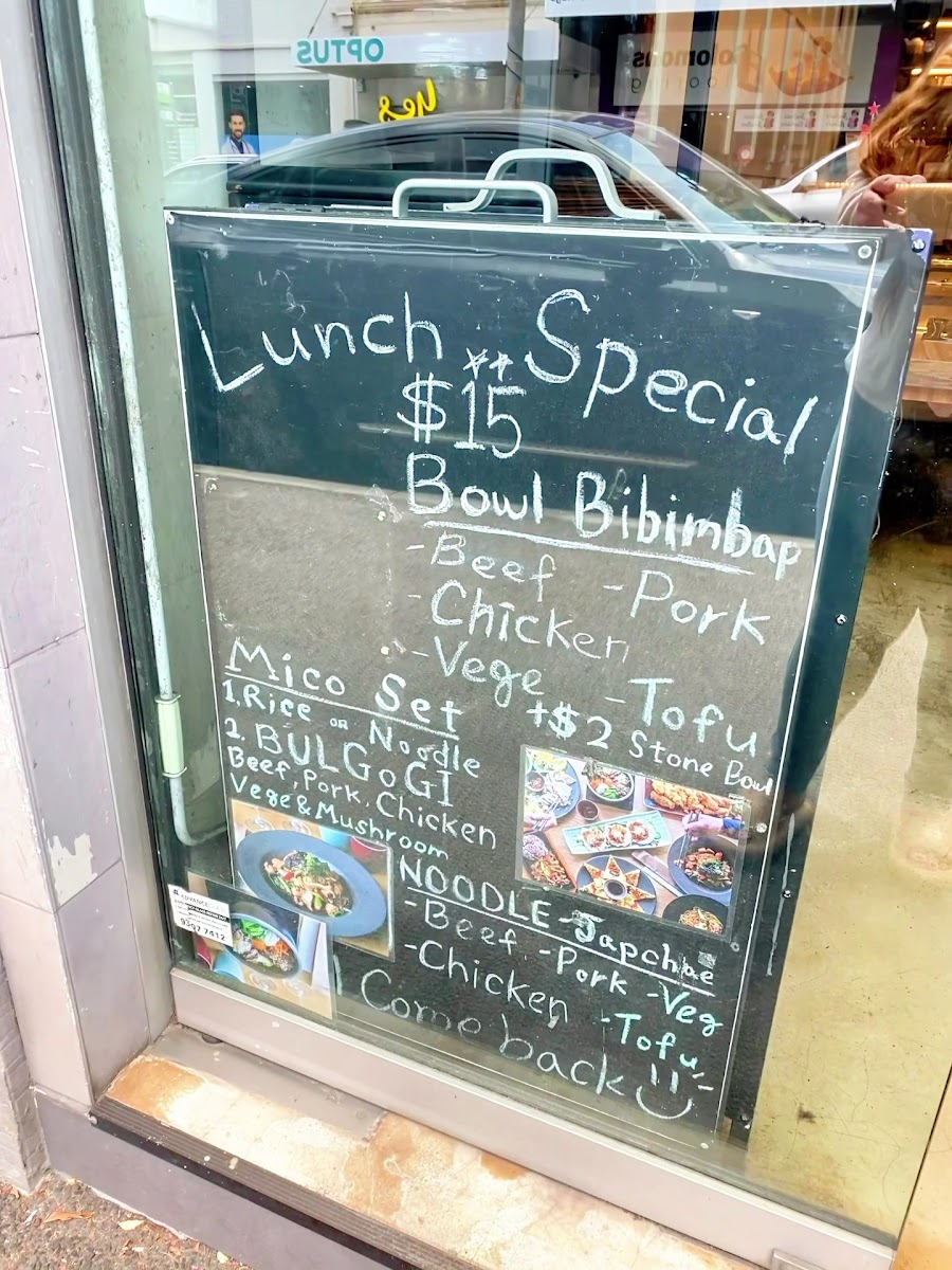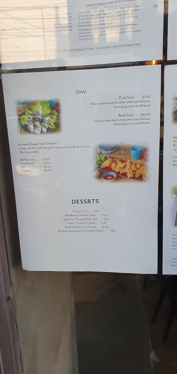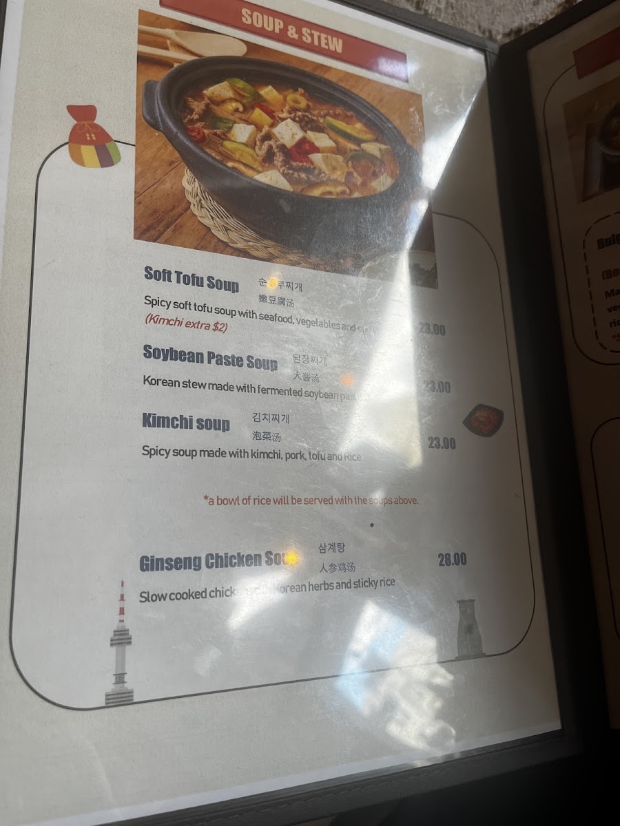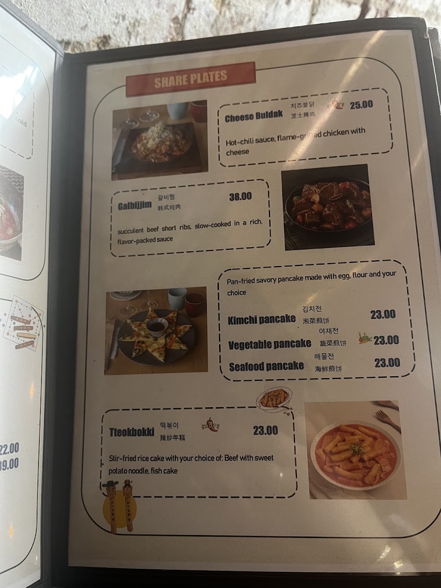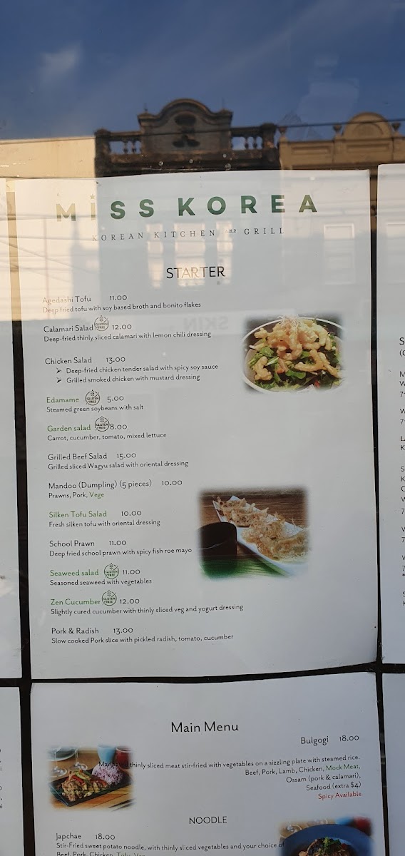 Miss Korea Kitchen offers a wide variety of flavorful and traditional Korean dishes, providing something for everyone. For a savory start, try the Kimchi Pancake, Seafood Pancake, or Vege Pancake, perfect for sharing. Pair these with sides like Kimchi or steamed Rice. Drinks such as Sparkling Water, Aloe, or Korean favorites like Milkis and Korean Soft Drinks are available to complement your meal. If you're in the mood for a hearty share plate, options like Tteokbokki, Cheese Buldak, or the soothing Homemade Korean Ginseng Chicken Soup are great choices. For appetizers, dive into the Agedadhi Tofu, refreshing Seaweed Salad, or crispy Takoyaki Salad, among others. The mains include classic dishes like Bulgogi, comforting Kimchi Soup, and the popular Bibimbap, offering a balance of flavor and nutrition. For a spicy twist, opt for the Kimchi Soft Tofu Soup or Soft Tofu Soup. Don’t miss out on the Korean Fried Chicken, available in Boneless Half (300g) or Boneless Full (600g) portions. The menu at Miss Korea Kitchen brings the authentic taste of Korean cuisine to life, whether you're looking for a light snack or a filling meal.